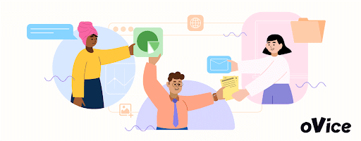 oVice, a virtual office, creates a layer of a real office environment in the virtual world. Teams can get together in one space, work, collaborate, and connect, in a spontaneous way – exactly like real life.